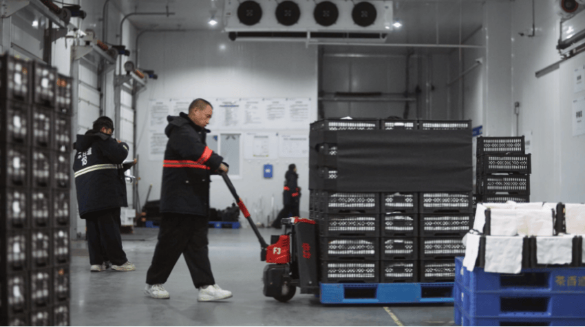 在产地端,针对易腐水果,茶百道启用压差预冷技术,鲜果采摘后迅速将果心温度降至2-6℃,第一时间锁住水分与风味;运输环节,则依托“干线冷链+城市配送+应急快递”多级协同的物流网络,实现全国范围内的高频响应与精准温控。
